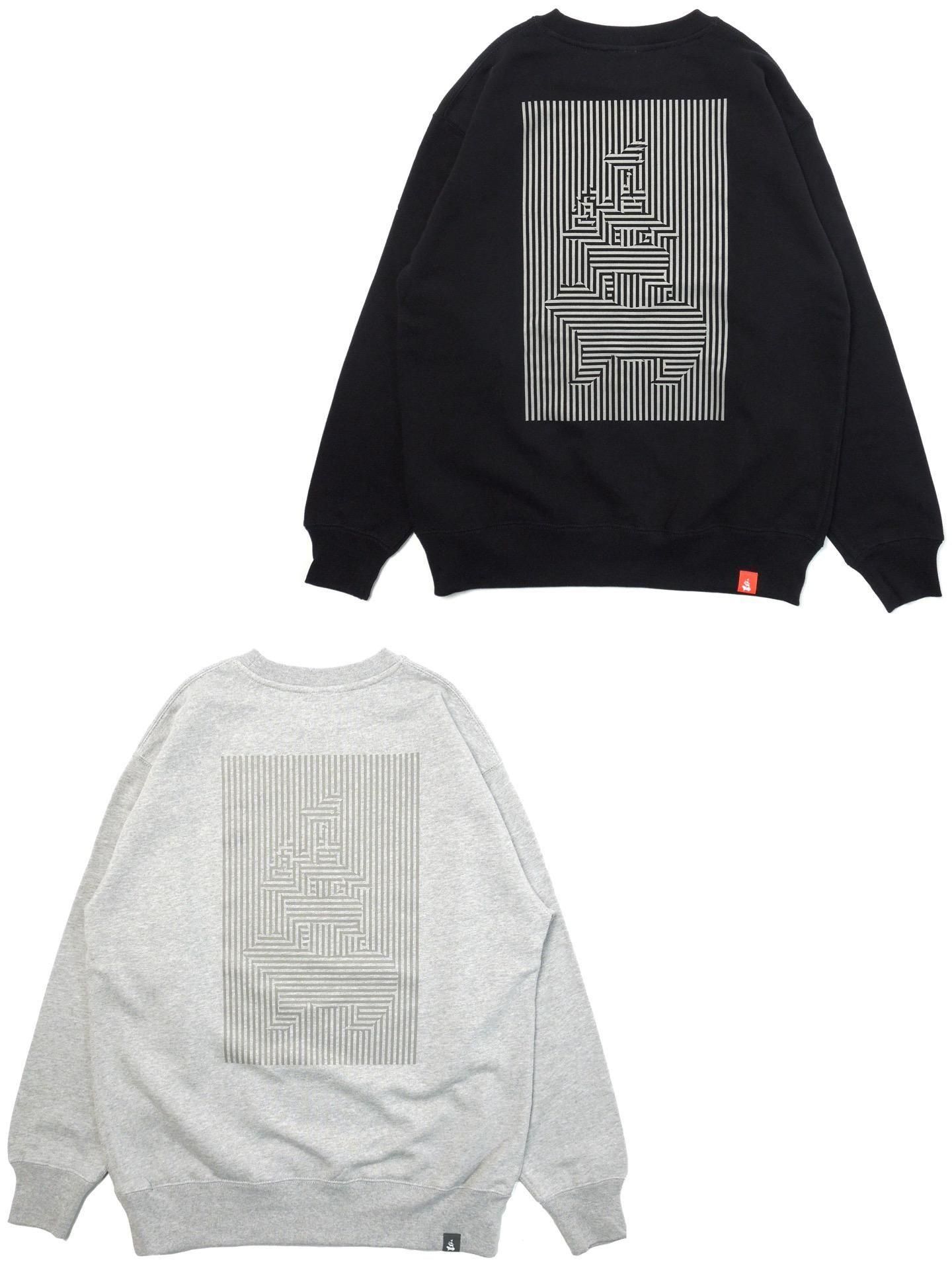 ややざっくりなシルエットが特徴の12.7ozのヘビーウェイトボディーを採用し、フロントにEZOBANDワンポイント刺繍、バックには一見すると幾何学模様かと思われますが中にEZO BANDが落とし込んだ錯視を利用したデザインを配置したクルーネックスウェット!!